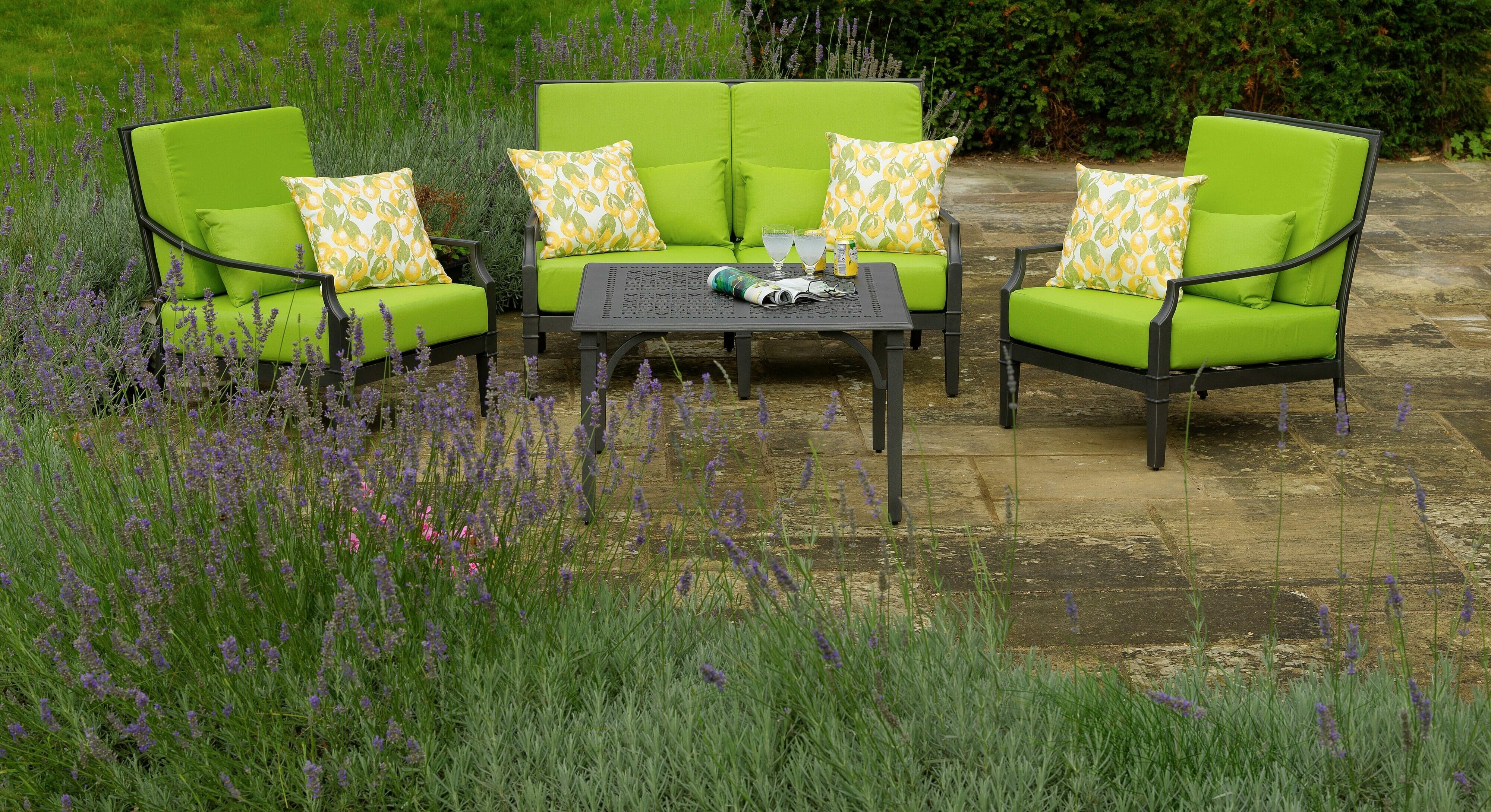 Like all our luxury outdoor furniture this set is handmade from refined, recycled aluminium. Each piece is constructed as one over numerous hours from individual sand castings. All the effort in our Cotswold factory goes into ensuring that our furniture is totally weatherproof and maintance free wherever in the world it is situated. Everything we make is built to last generations and is covered by our unique 10 year buy back guarantee. This impressive set is finished in gorgeous Indigo Blue which is given extra colour depth with these JAB International fabric cushions.