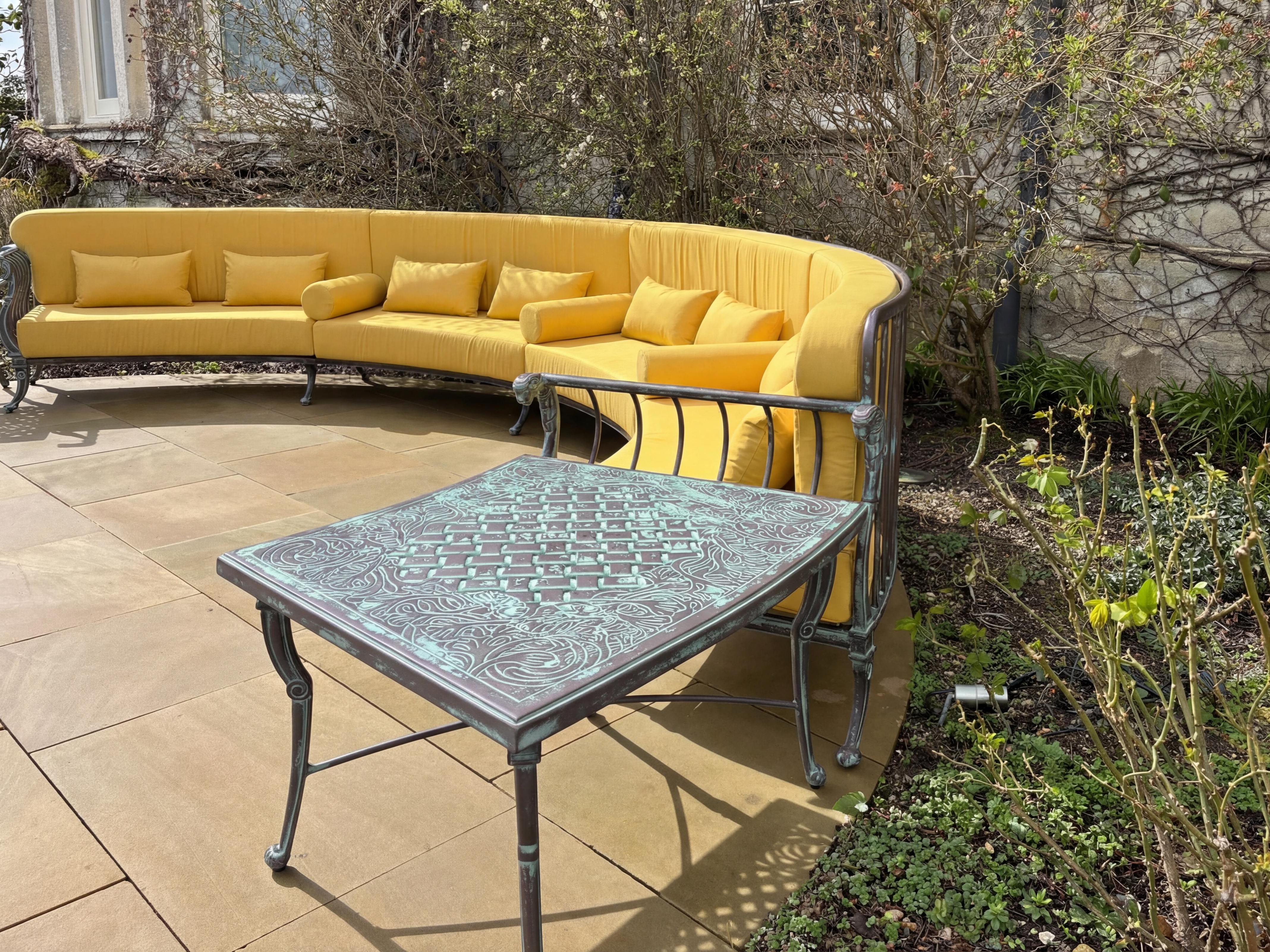 Following a long-standing relationship with a private client, Oxley’s was commissioned to design a one-of-a-kind curved seating solution for a newly landscaped terrace area. Working from sketch drawings and a site visit to confirm measurements, we engineered a seamless, multi-sectional sofa and matching coffee tables to integrate perfectly with the client’s existing Luxor collection.